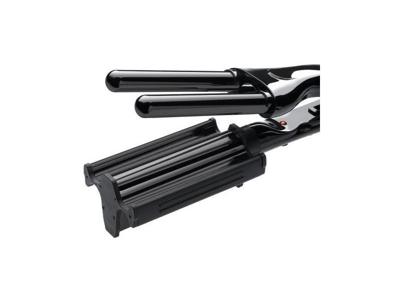 Datorită plăcilor ceramice reversibile, poți comuta rapid între buclele largi (efect „beach waves”) și valurile mai strânse, fără a schimba aparatul. Suprafața ceramică generează ioni negativi, eliminând electricitatea statică și reducând efectul de păr electrizat sau încrețit — pentru un finisaj neted, strălucitor și natural.
